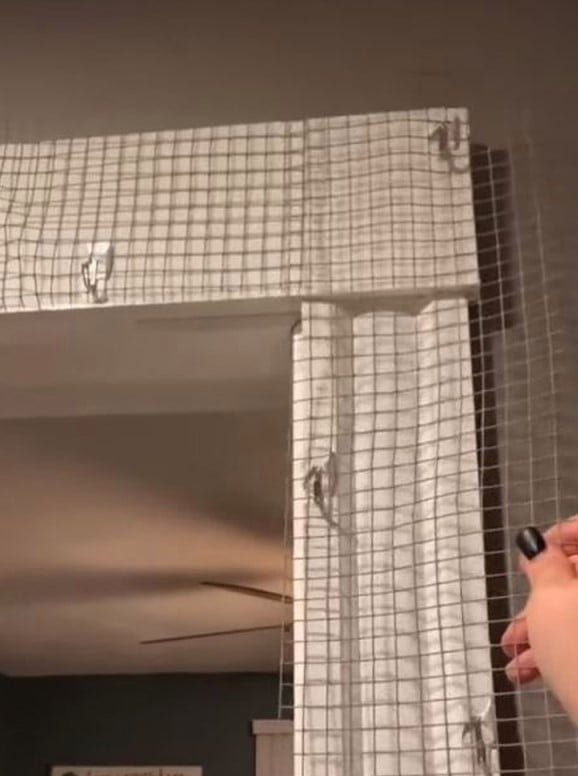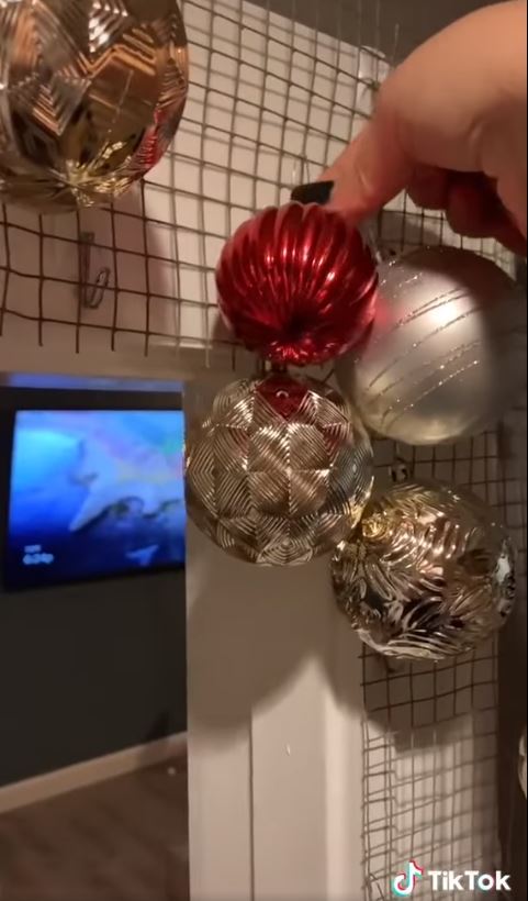 Adding the Wire Mesh: Using wire mesh, Jennie carefully hooks it onto the adhesive hooks. This creates a sturdy base for the garland and ensures that it stays in place throughout the holiday season. The wire mesh acts as a canvas for the upcoming decorations.