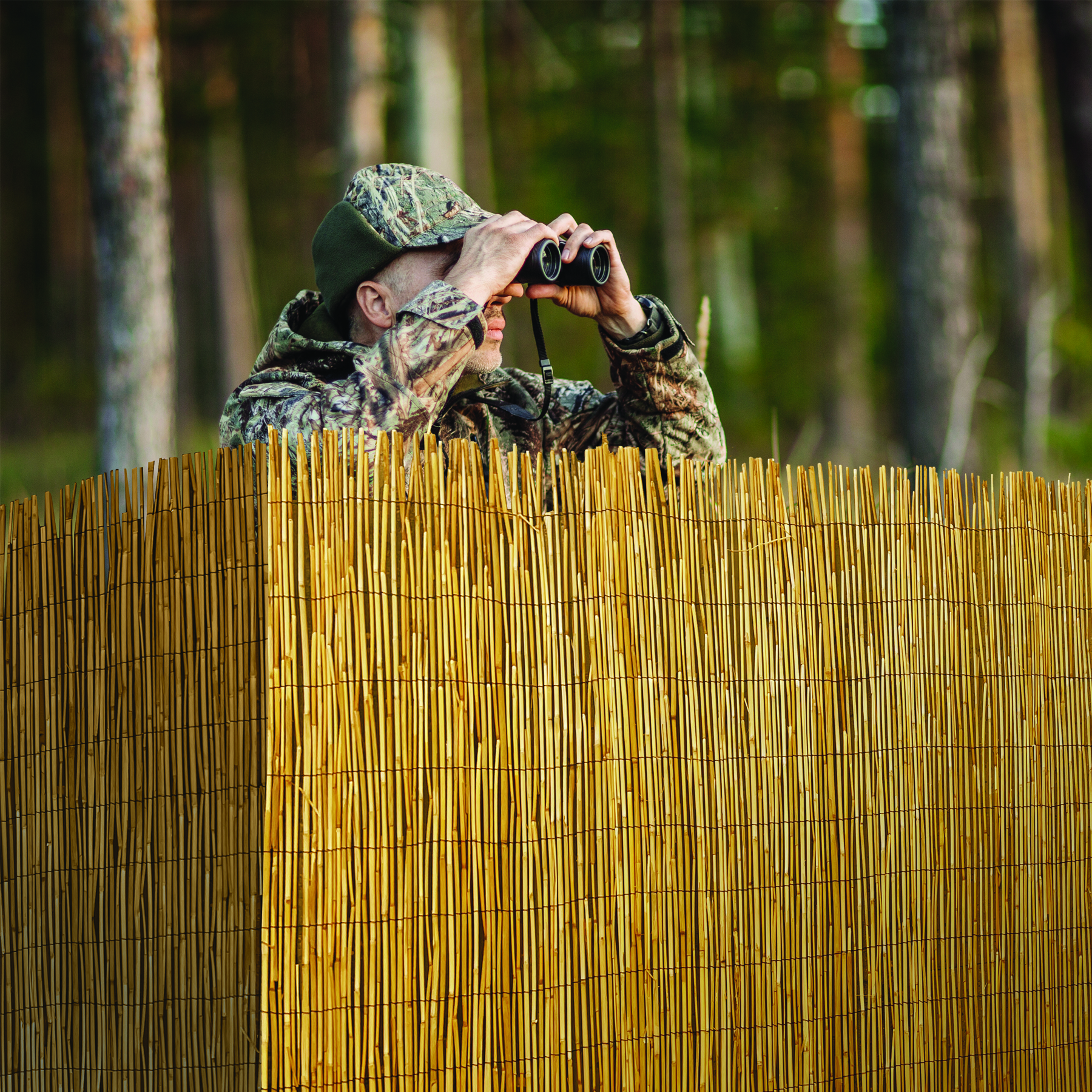 Reed Fence is a Bamboo Like material with wire holding it together. Natural looing woven fence can give your backyard or party a tropical feeling. Maybe you want a little more privacy in your back yard chain linked fence. You can easily install this right on top the chain-link. If hunting, can be used as blind fence for the animals with its aesthetically pleasing, nature look.