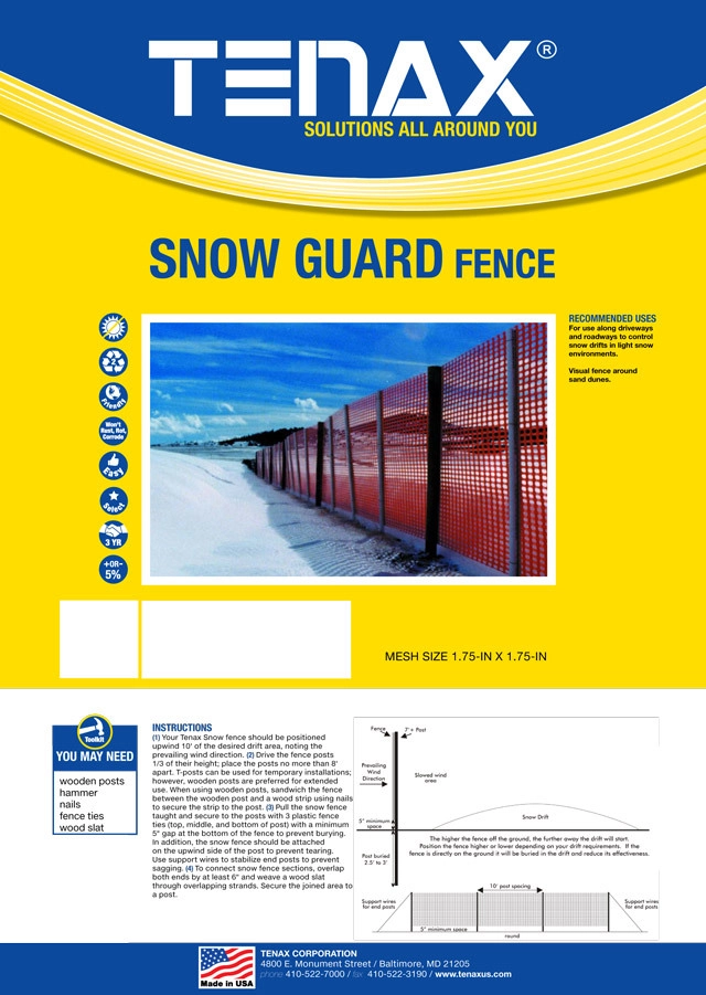 Tenax’s most economical snow fence for commercial and residential use and settings. Has a efficient snow-control design that can be used for parking lots, airports, or other facilities.